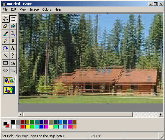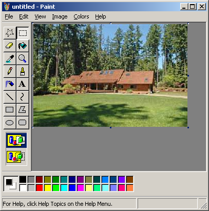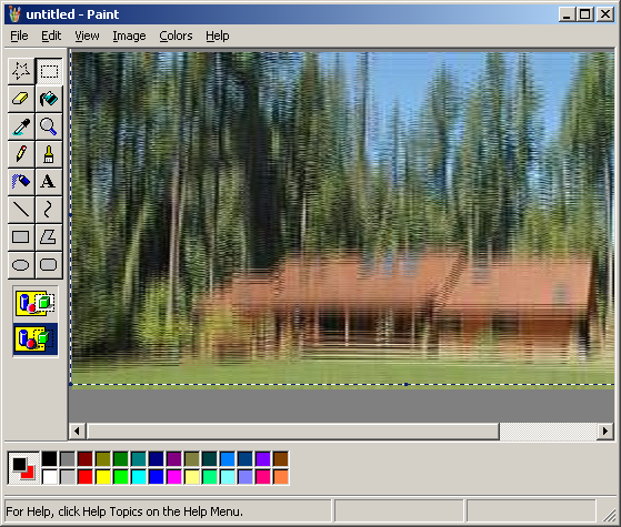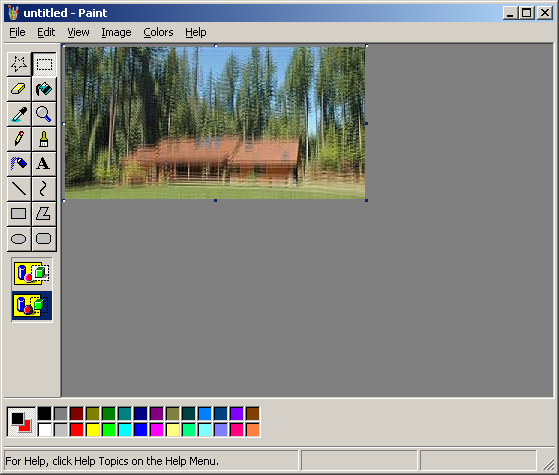 Remember that picture you had on the clipboard? Now open TWO more mspaint windows and paste it in each of those. Stretch both of them to 200% of their oritinal size (Ctrl + W). They should both look like this...