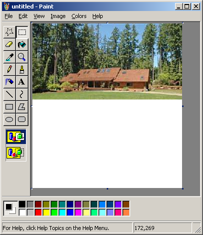 This may seem arbitrary. Open a new window of mspaint. Shrink it down to a few pixels. Then paste in the picture you have on the clipboard. This will stretch the image to the size of the image if you have a later version of mspaint, or it will prompt you to expand the image if you have an older version of mspaint. Click yes, if that is the case. Now delete the image. You should now have a blank image the size of the cabin picture. Now double the size by stretching it 200% horizontally and Vertially (Ctrl + W).