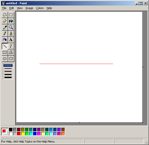 Now pick a color that is not very common in one of the pictures. For example, if one of your pictures is a white rabbit in a snowstorm, then use black. Using the line tool draw either a vertical or horizontal line on the blank third picture.