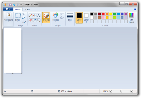 I've created a blank image that's 100 pixels by 260 pixels. (You can adjust the image size in the image attributes window which is accessible via Ctrl + E)