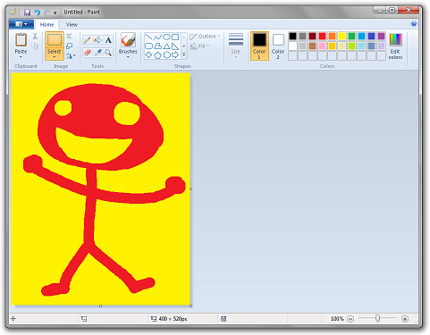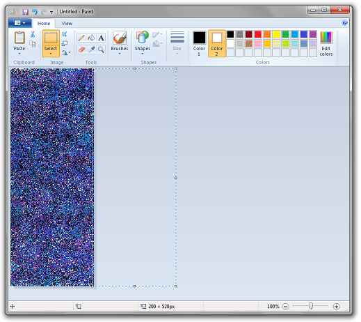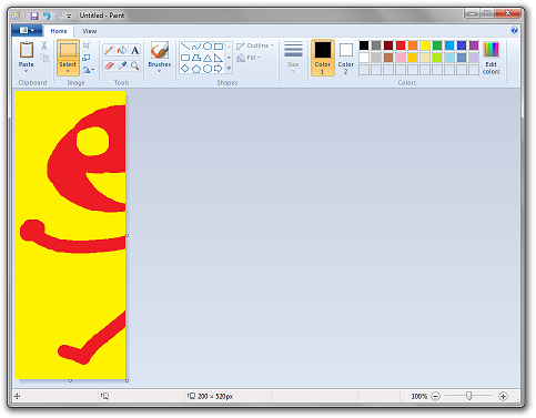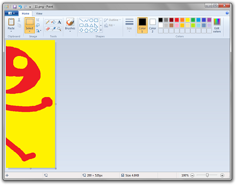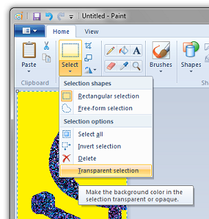 Now paste the first slice of the drawing on top of this image. Set the currently selected background color (or "Color 2" as the Windows 7 version likes to call it) to whichever foreground color you picked for your drawing. Then in the select menu, choose "Transparent Selection".
