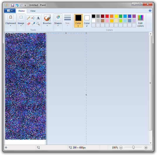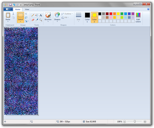 Now repeat the whole process again using the 2nd piece of your image and using strip 2 as a base instead of strip 1. Paste the contents of strip 2 into a new window of mspaint and move it to the left by 4 pixels.